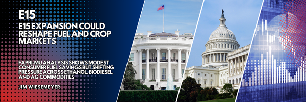 Bottom Line: The FAPRI-MU analysis suggests E15 expansion could deliver modest consumer fuel savings and reduce compliance costs while redistributing gains and losses across the agricultural sector — supporting corn demand but pressuring soybean-related markets. The findings highlight how biofuel policy changes can create unintended interactions between fuel regulations and farm economics, especially as the U.S. debates year-round E15 access.