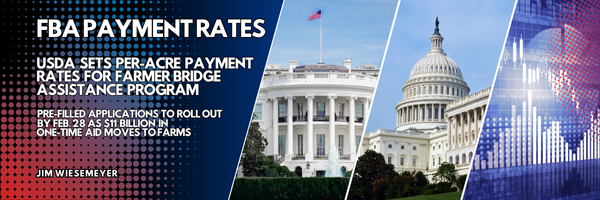 USDA released the eligible commodity payment rates for the Farmer Bridge Assistance Program (FBA), advancing the next phase of a one-time relief effort aimed at stabilizing farm finances ahead of the 2026 planting season.