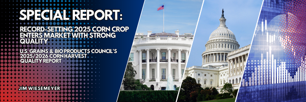 The U.S. Grains & BioProducts Council’s 2025/2026 Corn Harvest Quality Report (link) paints a picture of a U.S. corn crop that is not only historic in size but also notably strong in quality, setting a solid foundation for domestic users and global buyers as the marketing year begins.